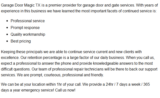 About Magic TX Garage Door of the Webster Area